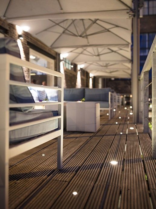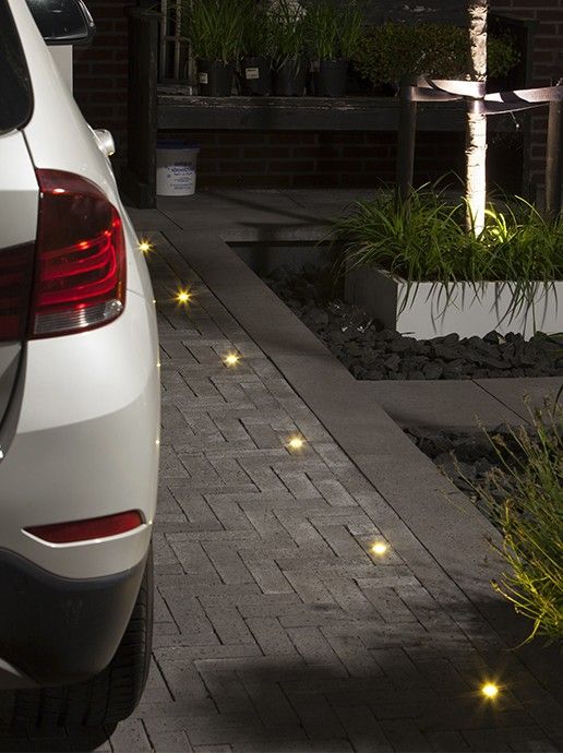 Ground spotlights or recessed lights are perfect for creating a cozy and stylish outdoor space. Use them on your driveway to create a safe and welcoming feeling, or in your garden to highlight certain features. Aditionally, using these fixtures as pathway lighting is the ideal way to create unique lighting effects. And don't forget to add a playful touch with various spotlight sizes, such as the in-lite Puck series, for dynamic visuals.
