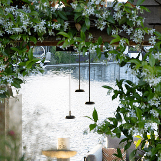 Er det bra vær ute? Selvfølgelig vil du nyte hagen din så lenge som mulig. Du trenger ikke gå inn når det blir mørkt, men du kan slappe av på verandaen din med vakre utvendige anheng. Du kan ganske enkelt plassere den som baldakinbelysning. Du kan også bruke pendler som belysning i hagehuset ditt. Du finner det perfekte anhenget til hagen din i vårt utvalg. Du kan velge in-lite pendler hvis du ønsker stilige og elegante lysarmaturer. Du kan også velge for enkelhets skyld. DISC Pendants er også tilgjengelig som en dimbar versjon. Den kan godt kombineres med pullerter i samme sortiment.