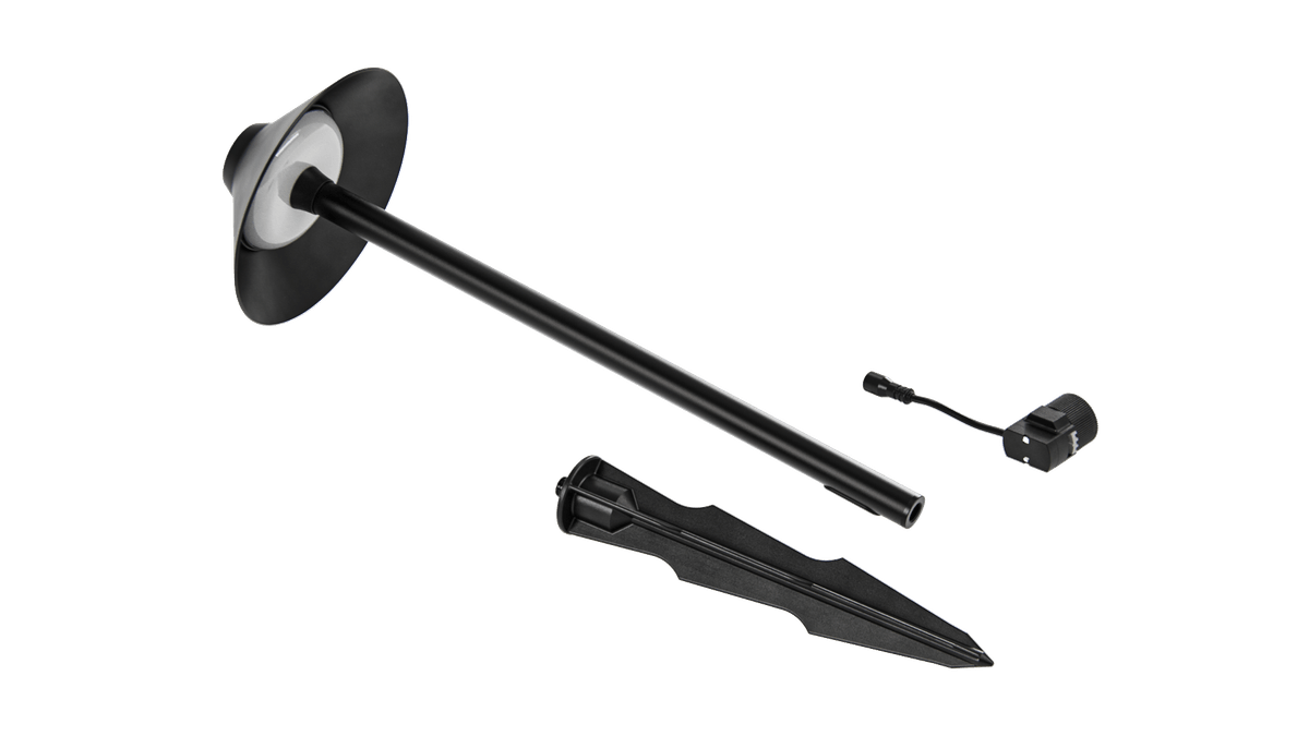 This 12V fixture runs on low voltage. To install it, you’ll need an in-lite transformer and a 12V cable. Simply insert the NAIL LOW into the ground at the desired location using the included ground stake. Then, connect the fixture to the main cable using the Easy-Lock connector, quick and hassle-free.
