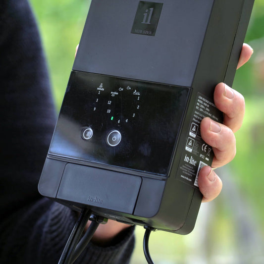 Letar du efter en transformator? Märket in-lite erbjuder flera transformatoralternativ. Alla modeller är kraftfulla och enkla att styra , vilket säkerställer att du alltid hittar en transformator som passar din trädgård och dina behov . in-lite HUB-50 är en transformator med ett maximalt installationsvärde på 50 VA. Dessutom är den utrustad med en ljus- och mörkersensor och en timer. In-lite HUB-100- transformatorerna har också dessa funktioner men har ett installationsvärde på 100 VA. Båda modellerna är enkla att använda med en "Easy Touch"-pekskärm. De använder fyra inställningar: